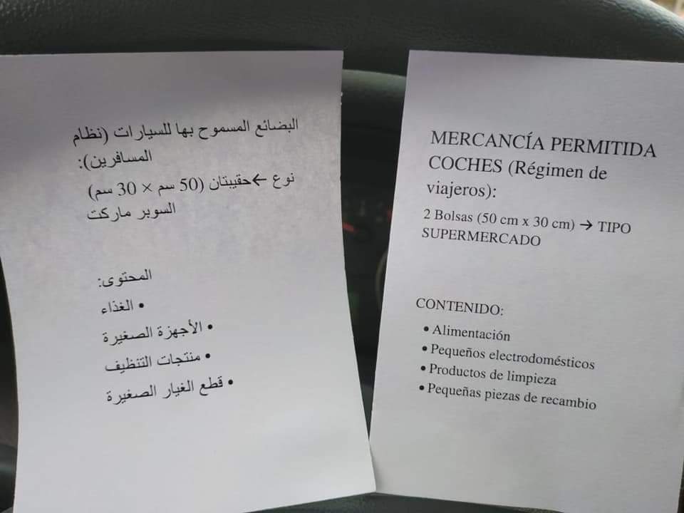 السلطات الاسبانية بسبتة المحتلة توزع قصاصات صغيرة على مستعملي المعبر الحدودي تهم لائحة بالبضائع المسموح بها للسيارات و المحتويات