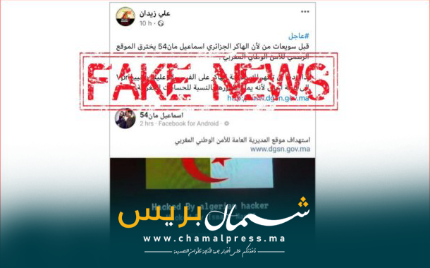 نفت مصالح للأمن الوطني، بشكل قاطع، صحة التدوينة التي كتبها المدعو علي زيدان، والتي تدعي حصول اختراق لموقع إلكتروني خاص بالمديرية العامة للأمن الوطني على الأنترنيت.