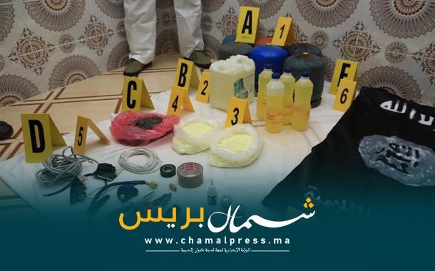 وأضاف البلاغ أن عناصر القوة الخاصة حرصت خلال عملية التدخل بمنزل متزعم هذه الخلية الإرهابية على إجلاء وتأمين أفراد أسرة المعني بالأمر والسكان المجاورين، بغرض ضمان سلامتهم ودرء المخاطر الناشئة عن إمكانية وقوع أي تفجير محتمل، خصوصا بعدما كشفت إجراءات التفتيش والمسح المكاني وجود قارورة وقنينات من أحجام مختلفة تضم حمض النيتريك وسوائل كيماوية مشكوك فيها، وكميات من المسامير والأسلاك الكهربائية، وستة قنينات غاز من الحجم الصغير، يشتبه في تسخيرها لأغراض إعداد متفجرات تقليدية الصنع.