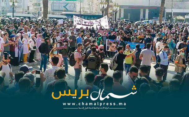 وتزامنت هذه المسيرة الاحتجاجية مع جلسة محاكمة الأساتذة المتابعين في ملف “التجمهر وإهانة القوات العمومية، وخرق حالة الطوارئ”، والتي قررت المحكمة الابتدائية في الرباط تأجيلها إلى نهاية السنة الجارية.