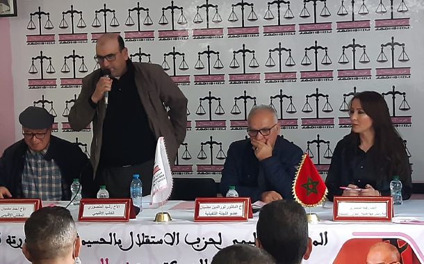 وفي ذات السياق عبر رشيد المنصوري الكاتب الإقليمي للحزب عن تفاؤله حيال وضعية الحزب التنظيمية والتواصلية التي ترجمت الى انتصارات ميدانية خلال الانتخابات الماضية مذكرا المناضلين والمناضلات خلال سرده لتقرير الكتابة الإقليمية بالبرامج التي لم يتوصل الحزب الى ترجمتها على أرض الواقع معزيا ذلك لما عاشه بلدنا الحبيب خلال فترة الحجر الصحي وما صاحبه من ركود على مستوى الأنشطة الميدانية، محفزا إياهم على تكثيف الجهود من أجل تداركها في قادم الأيام. ثم انتقل الى سرد البرنامج المقبل لتجديد فروع الحزب.