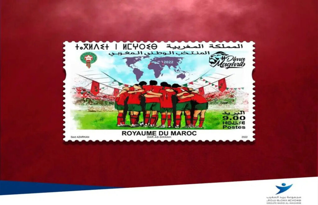 أصدرت مجموعة بريد المغرب طابعا بريديا تحت شعار “المنتخب الوطني المغربي – ديما مغرب” وذلك تخليدا للإنجاز التاريخي للمغرب بمونديال قطر 2022.