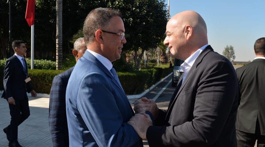 وكان فوزي لقجع رئيس الجامعة الملكية لكرة القدم ، في استقبال إنفانتينو و موتسيبي.