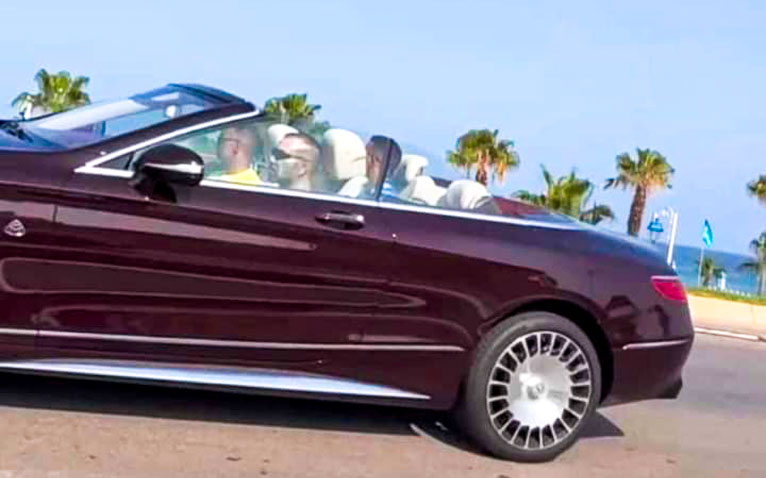 شوهد الملك محمد السادس بلوك ونظارات صيفية وهو بصحة جيدة، يتجول على متن سيارته المكشوفة “مايباخ” رفقة ولي العهد مولاي الحسن بشوارع مدينة الفنيدق أمام انظار الآلاف من سكان المدينة وزوارها الذين قاموا بتحيته والتصفيق له مرددين “الله يطول فعمر سيدنا” ” عاش الملك”.