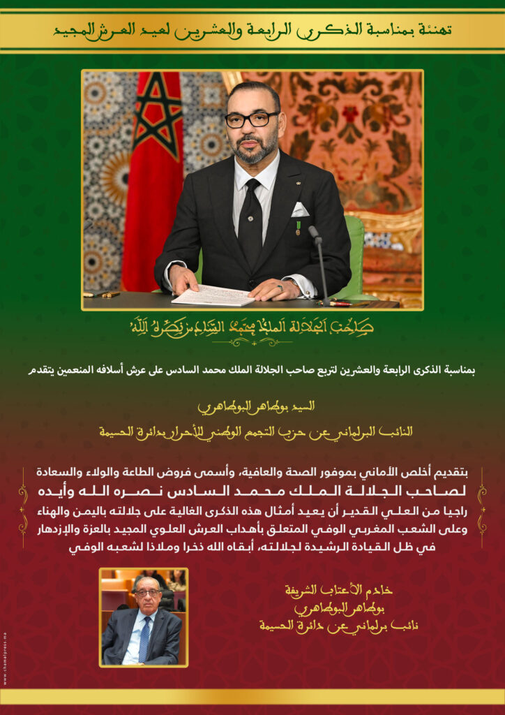 بمناسبة الذكرى السادسة والعشرين لتربع صاحب الجلالة الملك محمد السادس على عرش أسلافه المنعمين، يتشرف رئيس المرصد الوطني للشباب والسياسات