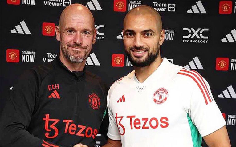 قدم صباح اليوم الثلاثاء، مدرب نادي مانشستر يونايتد، تين هاغ، لاعب الريدز الجديد، الدولي المغربي سفيان أمرابط.