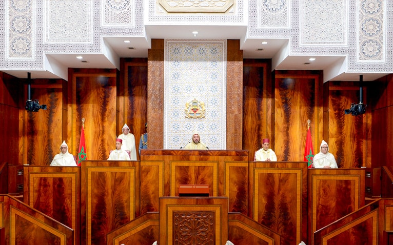 وجه الملك محمد السادس، مرفوقا بولي العهد الأمير مولاي الحسن، وشقيقه مولاي رشيد، اليوم الجمعة 13 أكتوبر 2023، خطابا ساميا إلى أعضاء البرلمان بمناسبة افتتاح الدورة الأولى من السنة التشريعية الثالثة من الولاية التشريعية الحادية عشرة، طبقا لأحكام الفصل 62 من الدستور.