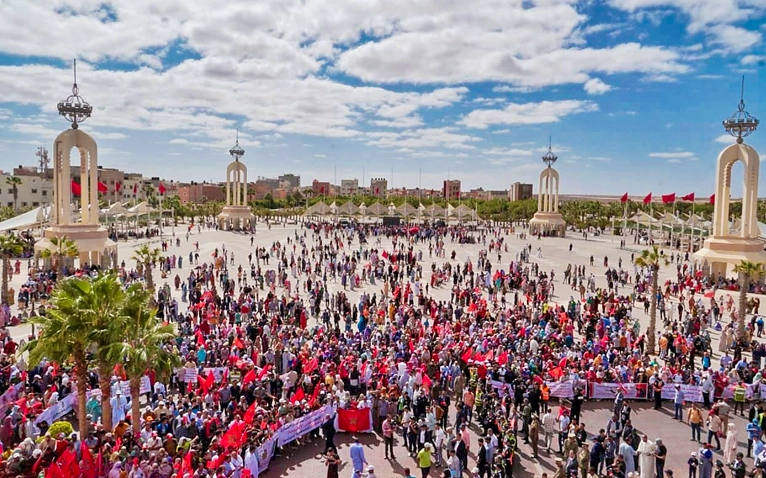 وتجمعت ليومه الأحد 05 نوفمبر بساحة ولي العهد الأمير مولاي الحسن، بدعوة من شيوخ وقبائل الصحراء المغربية وعدة إطارات جمعوية ومدنية، للتنديد بسعي مرتزقة البوليساريو الى المساس بأمن وسلامة المدنيين العزل.