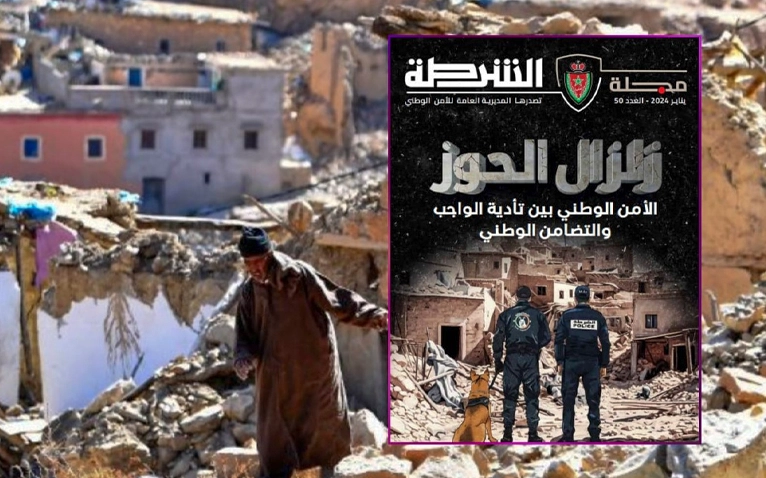 يسلط العدد الجديد من مجلة الشرطة، التي تصدرها المديرية العامة للأمن الوطني، باللغتين العربية والفرنسية، الضوء على تدبير الأمن الوطني لآثار الزلزال الذي شهده إقليم الحوز والمناطق المجاورة في الثامن من شتنبر الماضي، وذلك ضمن ملف خاص بعنوان “زلزال الحوز.. الأمن الوطني بين تأدية الواجب والتضامن الوطني”.