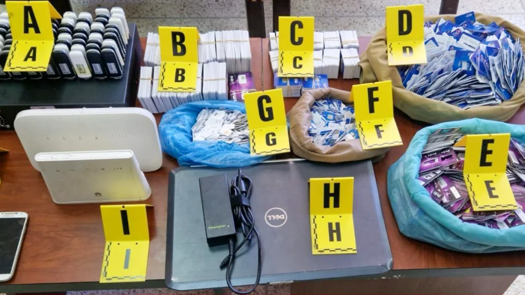 وقد مكنت عملية الضبط والتفتيش المنجزة بداخل منزل يستغله المشتبه به من حجز حاسوب محمول و82 جهازا لاسلكيا للربط بالأنترنت، فضلا عن 2077 شريحة هاتفية و1758 دعامة خاصة بالشرائح الهاتفية، وكذا مجموعة من المعدات الإلكترونية والمعلوماتية المستعملة في ارتكاب هذه الأفعال الإجرامية.