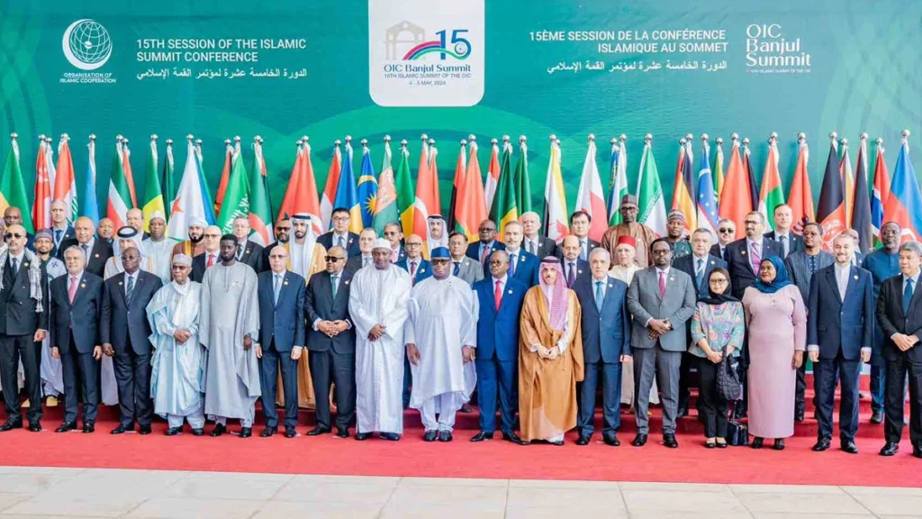 يطيب لنا في البداية، أن نعرب لأخينا، فخامة السيد أداما بارو، رئيس جمهورية غامبيا الشقيقة، عن خالص الشكر وبالغ التقدير، على الدعوة لحضور هذه القمة الإسلامية التي تستضيفها جمهورية غامبيا الشقيقة، مشيدين في هذا الصدد بالتنظيم الم حك م الذي واكب انعقادها ويسر سبل إنجاحها.