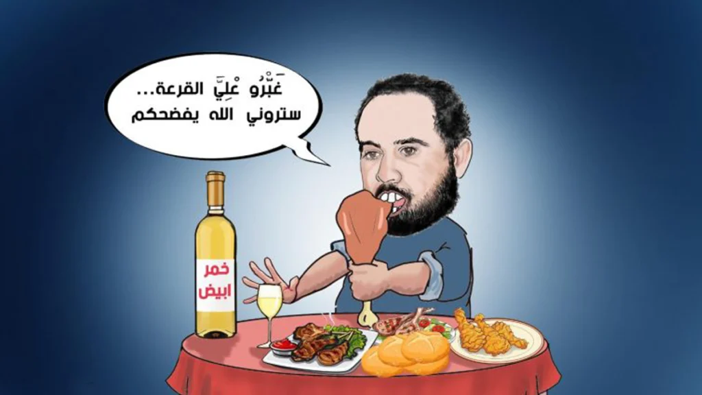 فقد نشر المعطي منجب صورة توثق لسليمان الريسوني وهو يلتهم أجمل ما في لحم الخروف، مما التصق بعظم، على إيقاع نكهة قنينة خمر معتقة من غير تلك المتاحة ولا المتوفرة للطبقات المناضلة.