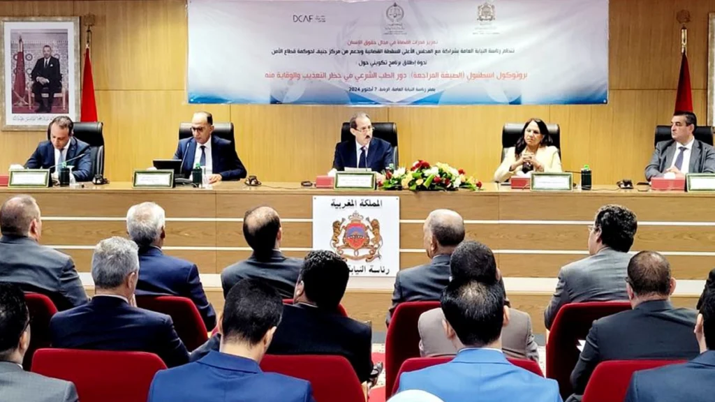 وأضاف الداكي، في كلمته خلال افتتاح أشغال ندوة إطلاق برنامج تعزيز القدرات في مجال استخدام أدلة الطب الشرعي في التحري والتحقيق في ادعاءات التعذيب طبقا لبرتوكول إسطنبول في صيغته المراجعة المنظمة من طرف رئاسة النيابة العامة، وبشراكة مع المجلس الأعلى للسلطة القضائية وبتعاون من مركز جنيف لحوكمة قطاع الأمن الرباط، أضاف، أن اعتماد هذا البرنامج التكويني التخصصي، يأتي في إطار مواكبة انخراط المملكة المضطرد في المنظومة الدولية لحقوق الإنسان وترجمة إرادتها الراسخة في تكريس مبادئ حقوق الإنسان وضمان التمتع بها من خلال مجهود متواصل لإدماج المعايير الدولية المترتبة عن الاتفاقيات الدولية التي صادقت عليها المملكة المغربية في التشريعات الوطنية واستحضارها في الممارسات اليومية لمختلف المؤسسات والجهات المعنية.