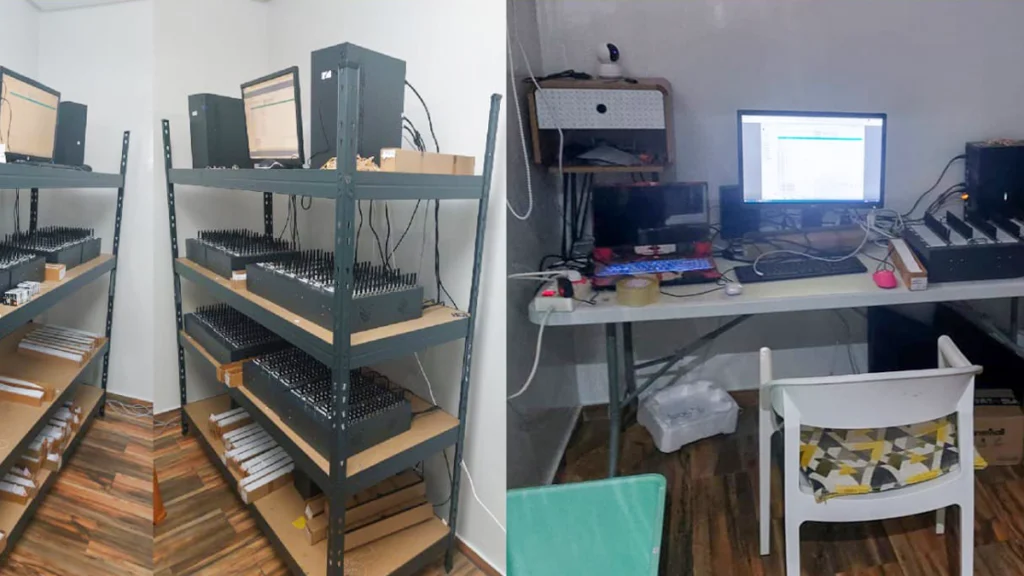 وقد أسفرت عملية الضبط والتفتيش المنجزة بداخل منزل يستغله المشتبه فيهم عن حجر مجموعة من الحواسيب الثابتة والمحمولة وكمية مهمة من الشرائح الهاتفية، علاوة على أجهزة إلكترونية سلكية ولاسلكية ومعدات معلوماتية تستعمل في هذا النشاط الإجرامي.