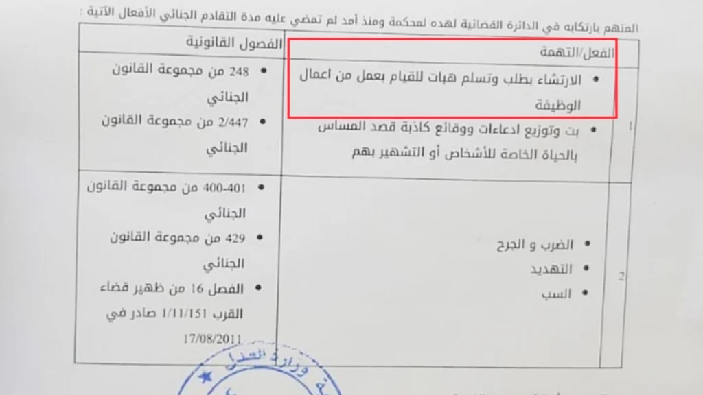 وقضت المحكمة بسجن المتهم، المعروف بالأحرف الأولى (ر ـ ع)، لمدة ستة أشهر نافذة، مع فرض غرامة مالية قدرها 10 آلاف درهم، بعد إدانته بتهمة الارتشاء وتلقي هبات مقابل القيام بأعمال تتعلق بمهامه الرسمية كنائب رئيس مجلس منتخب.