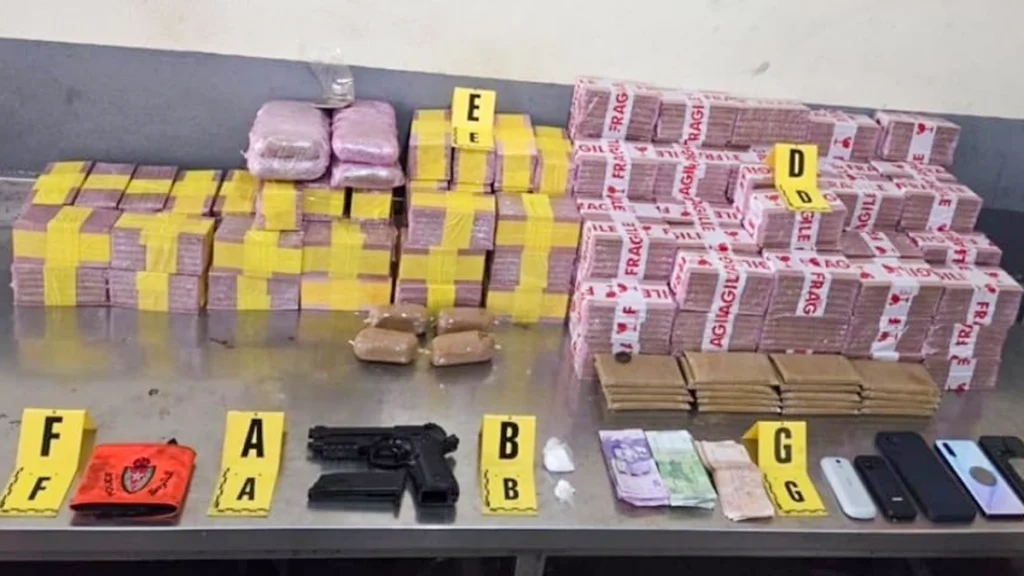 وحسب المعلومات الأولية للبحث، فقد أوقفت عناصر الشرطة بأكادير بتنسيق مع مصالح المديرية العامة لمراقبة التراب الوطني المشتبه فيهما على متن سيارة رباعية الدفع تحمل لوحات ترقيم مزورة، كانت محملة بثلاثة أكياس من مخدر الشيرا يبلغ مجموع وزنها 75 كيلوغراما ومسدس للضغط بالهواء وجرعات من مخدر الكوكايين، وذلك قبل أن تسفر عملية التفتيش المنجزة داخل منزل مرافق الشرطي عن حجز كمية إضافية من مخدر الشيرا تزن 97 كيلوغراما.