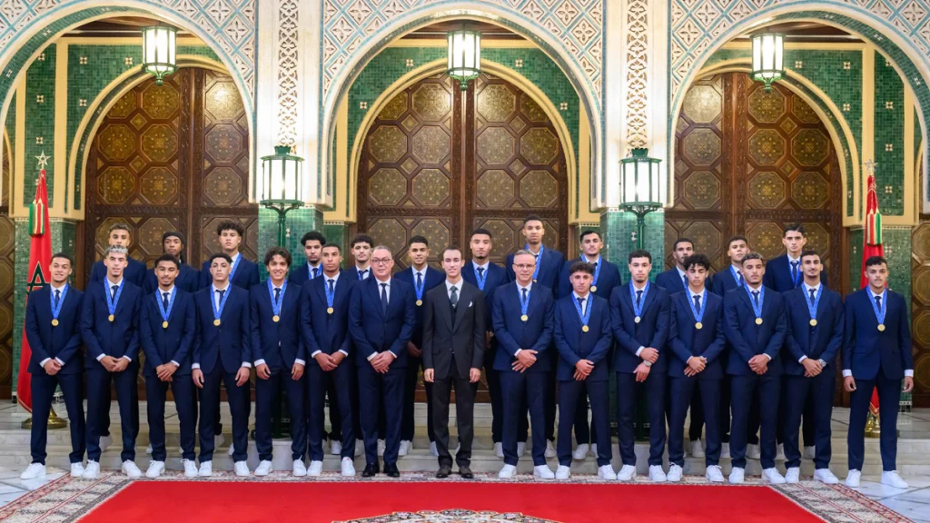بتعليمات سامية من صاحب الجلالة الملك محمد السادس، نصره الله، ترأس صاحب السمو الملكي ولي العهد الأمير مولاي الحسن، اليوم الأربعاء 22 أكتوبر 2025 بالقصر الملكي بالرباط، حفلا أقامه جلالة الملك على شرف أعضاء المنتخب الوطني لكرة القدم لأقل من 20 سنة، عقب ظفرهم بكأس العالم 2025 التي نظمت في الشيلي.