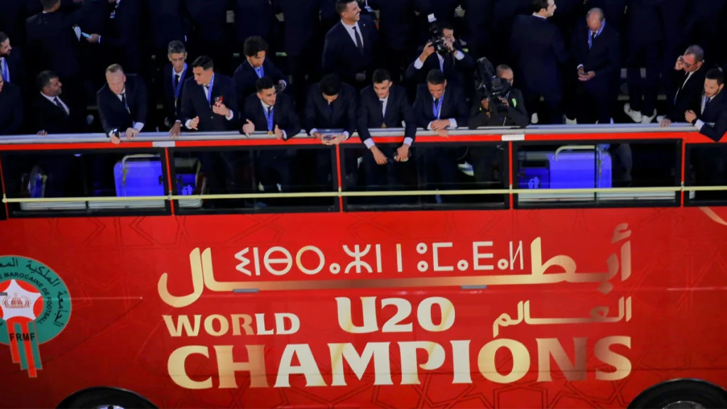 في مشهد رمزي مفعم بالدلالات الوطنية، تألقت حافلة المنتخب الوطني المغربي لأقل من 20 سنة، المتوج بكأس العالم، بحروف اللغة الأمازيغية إلى جانب العربية، خلال الاستقبال الشعبي الحاشد الذي احتضنته العاصمة الرباط.