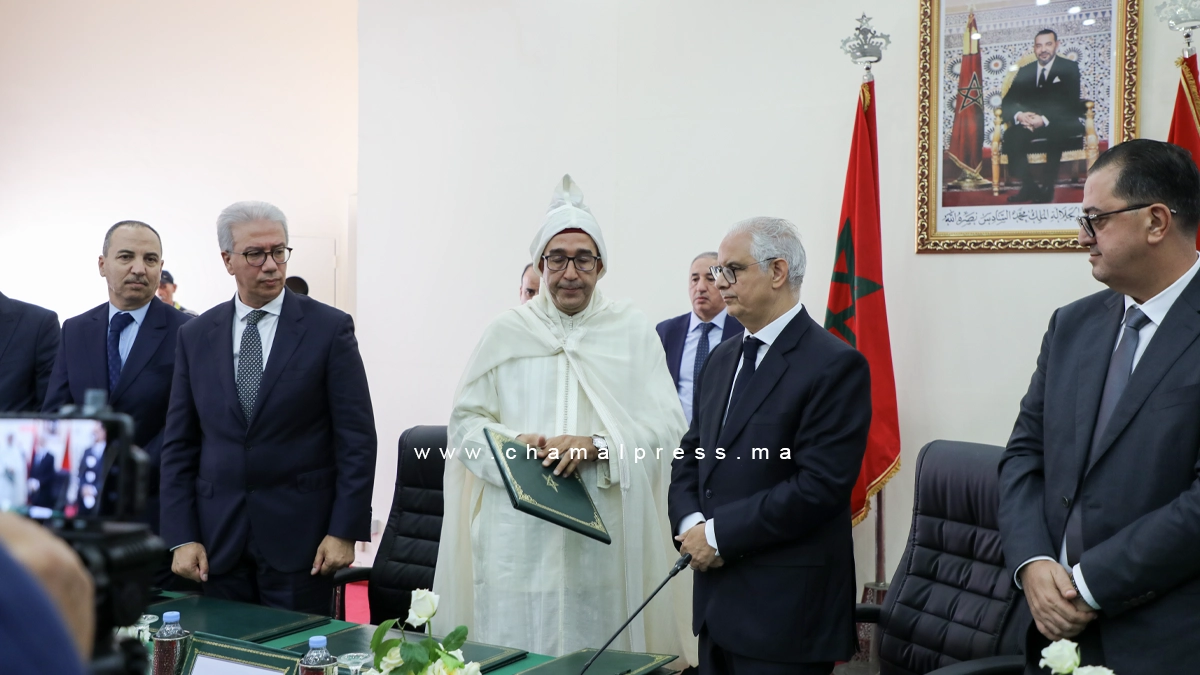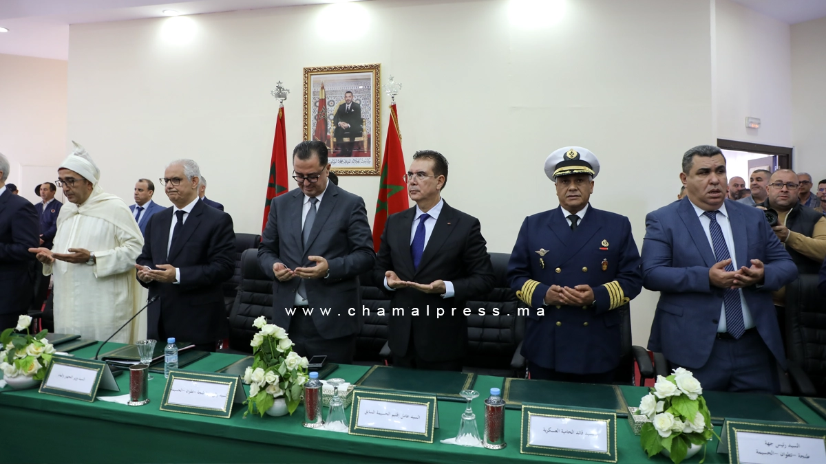 وجرى الحفل بمقر العمالة، بحضور والي جهة طنجة–تطوان–الحسيمة يونس التازي، ورؤساء المصالح الخارجية، ومنتخبين، ومسؤولين قضائيين وأمنيين، وفعاليات مدنية، حيث تم التأكيد على الأهمية الاستراتيجية التي يشغلها إقليم الحسيمة داخل خريطة المشاريع الوطنية الهادفة لتسريع التنمية الترابية.