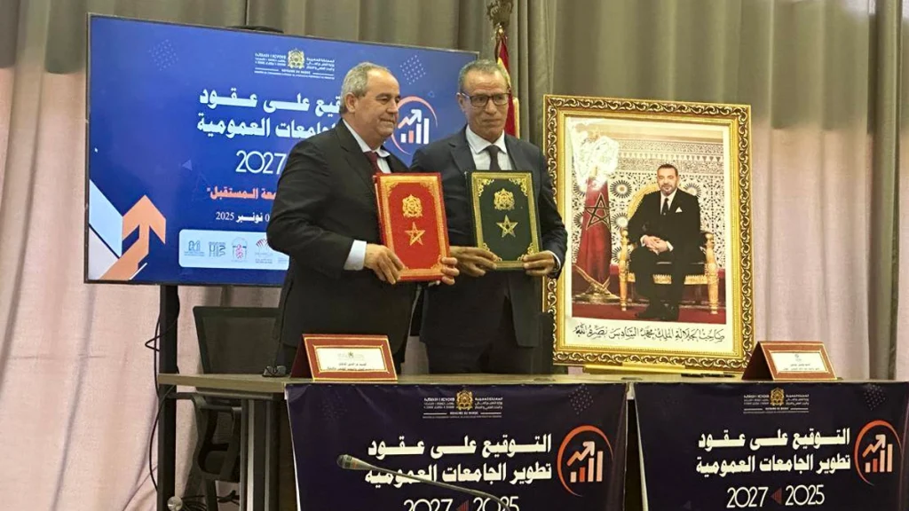 بمناسبة تخليد الذكرى الخمسين للمسيرة الخضراء المظفرة، وتحت شعار: “من أجل إرساء أسس جامعة المستقبل”، شهدت مدينة العيون، يوم الجمعة 7 نونبر 2025، تنظيم حفل توقيع عقود تطوير الجامعات العمومية برسم الفترة 2025 – 2027، في محطة وطنية كبرى تروم إرساء نموذج جديد للحكامة الجامعية وتعزيز دينامية الإصلاح البيداغوجي والبحث العلمي والابتكار.