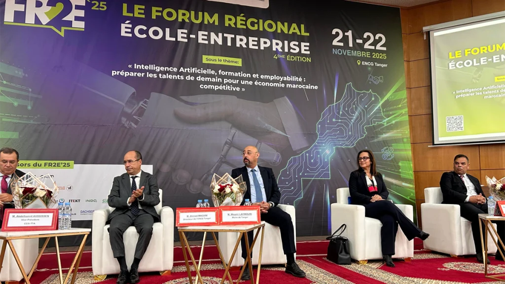 انطلقت يوم الجمعة 21 نونبر 2025 بمدينة طنجة، فعاليات الدورة الرابعة للمنتدى الجهوي “المدرسة–المقاولة” (FR2E’25)، تحت شعار: “الذكاء الاصطناعي، التكوين والتشغيل… تحضير كفاءات الغد من أجل اقتصاد مغربي تنافسي”. وهي دورة تأتي في زمن يتسارع فيه التحول الرقمي، وتتعاظم فيه الحاجة إلى كفاءات مؤهلة قادرة على مواكبة ذكاء اصطناعي بات يعيد رسم ملامح سوق الشغل عالمياً.