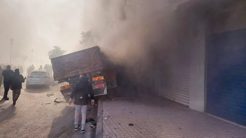 وبحسب المعطيات الأولية، فقد تعرضت الشاحنة لعطل مفاجئ في نظام الكبح أثناء انحدارها عبر أحد المنحدرات، ما أفقد السائق السيطرة وجعل المركبة تنزلق بسرعة قبل أن ترتطم بقوة بواجهات المباني، مخلّفة خسائر مادية جسيمة وحالة هلع وسط السكان.
