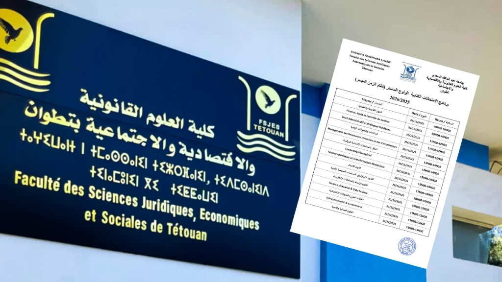 أعلنت كلية العلوم القانونية والاقتصادية والاجتماعية بتطوان عن برنامج الامتحانات الكتابية لولوج سلك الماستر – مسار الزمن الميسر، والمزمع تنظيمها يومي 20 و21 دجنبر 2025، غير أن هذا الإعلان جاء منقوصًا وأثار موجة من الغضب والاحتقان في صفوف المترشحين، بسبب التأخر غير المبرر في نشر لائحة المدعوين لاجتياز الامتحانات.