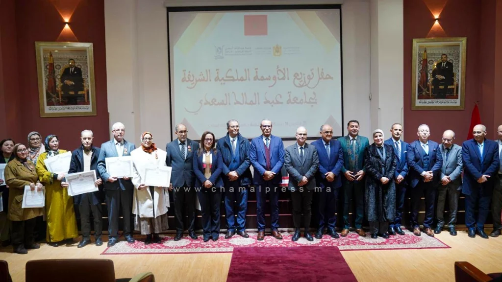 احتضنت جامعة عبد المالك السعدي، يوم الخميس 19 دجنبر 2025، حفلاً رسمياً متميزاً خصص لتوشيح نخبة من أطرها من الأساتذة الباحثين والأطر الإدارية والتقنية بالأوسمة الملكية الشريفة، التي تفضل صاحب الجلالة الملك محمد السادس نصره الله وأيده بمنحها لهم، اعترافاً بما أسدوه من خدمات جليلة، وتقديراً لمساراتهم المهنية المشرفة، وما تحلّوا به من تفانٍ وإخلاص في خدمة الجامعة والوطن.