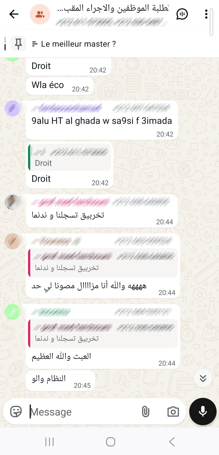 مرفق توثيقي: مقتطفات من نقاشات الطلبة الموظفين حول ماستر “الزمن الميسر” بكلية العلوم القانونية والاقتصادية والاجتماعية بتطوان