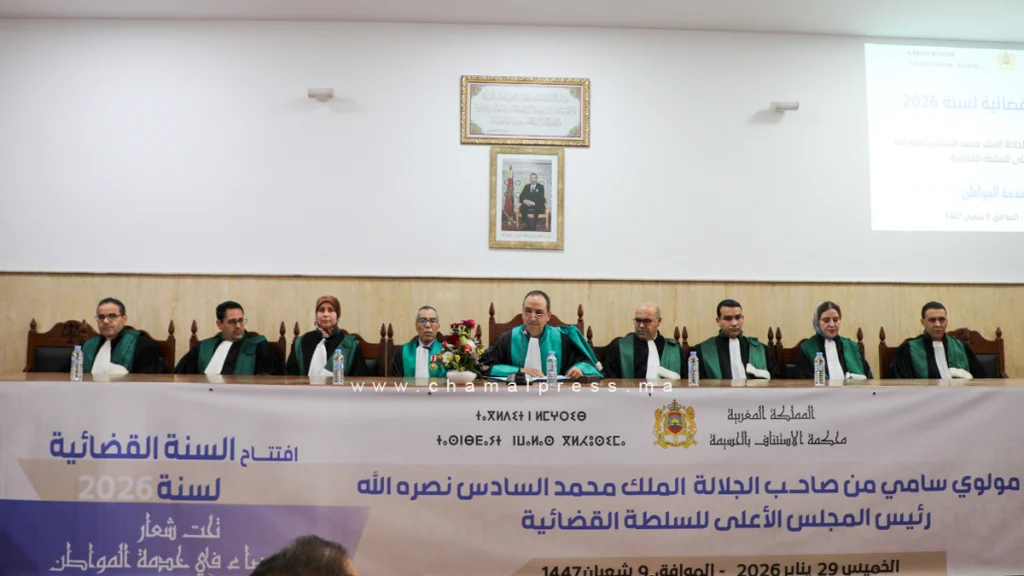 شهدت محكمة الاستئناف بالحسيمة، صباح يوم الخميس 29 يناير 2026، مراسيم افتتاح السنة القضائية الجديدة تحت شعار “القضاء في خدمة المواطن”، وذلك بإذن مولوي سامٍ من صاحب الجلالة الملك محمد السادس نصره الله، رئيس المجلس الأعلى للسلطة القضائية، في محطة مؤسساتية شكلت مناسبة لاستعراض حصيلة نشاط الدائرة القضائية خلال سنة 2025 واستشراف رهانات المرحلة المقبلة في سياق تنزيل ورش إصلاح العدالة وتعزيز النجاعة القضائية وترسيخ الثقة في المؤسسة القضائية.