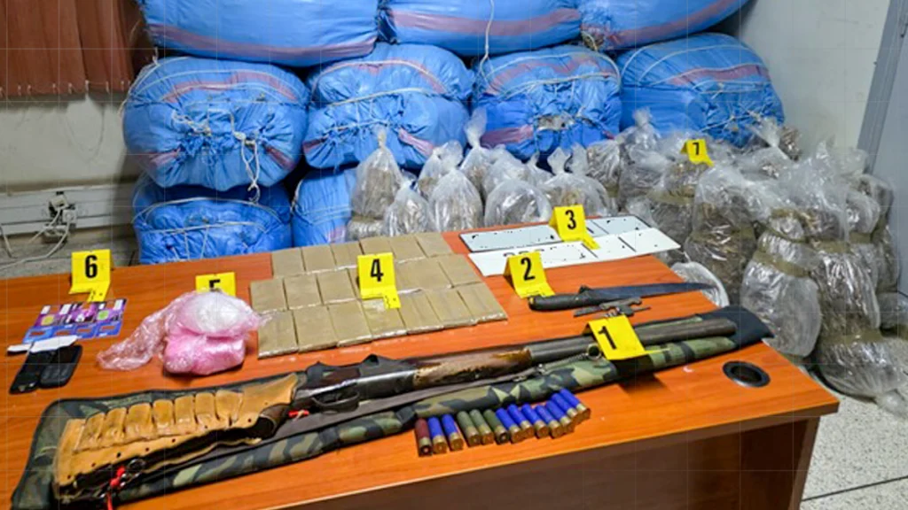 أما العملية الثانية فقد تم تنفيذها بالمنطقة القروية “كنان زمامرة” بضواحي قلعة السراغنة، حيث مكنت من توقيف سيارة نفعية على متنها شخصان يشكل أحدهما موضوع عدة مذكرات بحث على الصعيد الوطني، قبل العثور بحوزتهما على 476 كيلوغراما من مخدر الكيف و 105 كيلوغراما من التبغ المهرب، فضلا عن 700 غراما من الكوكايين وكيلوغرام و700 غراما من مخدر الشيرا، وكذا بندقية صيد غير مرخصة و13 خرطوشة.